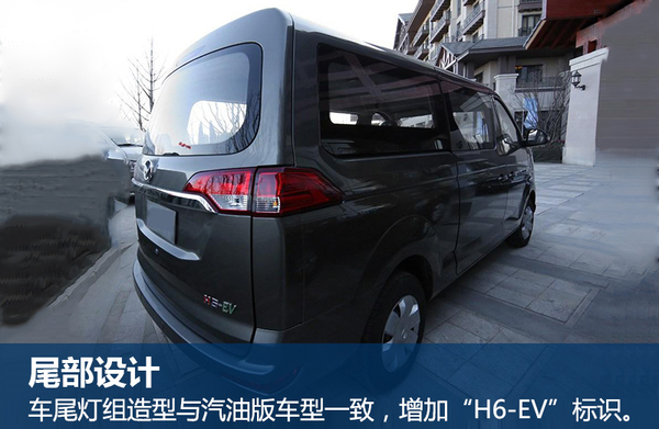 尾部方面,该车尾灯组造型与汽油版车型一致,并同样装配了尾门镀铬饰条,而该车尾门右下角的“H6-EV”车身标识则证明了电动版车型的身份。