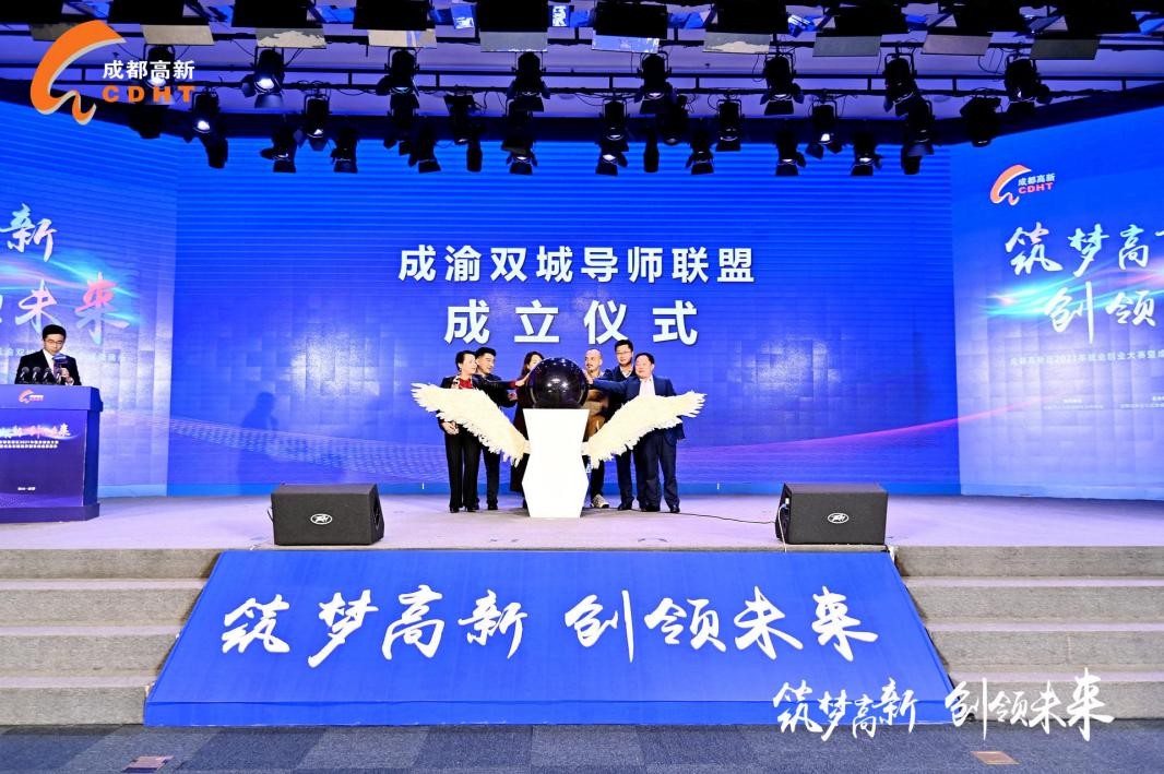 26日,成都高新区2021年就业创业大赛颁奖典礼暨成渝双城经济圈成果展示活动隆重举行。开场的大赛汇报视频及”筑梦高新·菁英说“表演精彩绝伦,引人入胜。现场,在相关领导、与会嘉宾、媒体朋友及现场观众的共同见证下,“成渝双城导师联盟”正式成立,将整合成渝地区创业就业导师服务资源和服务能力,共同推动导师与创业就业人员的交流与互动,促进成渝地区双城经济圈就业创业协同发展。