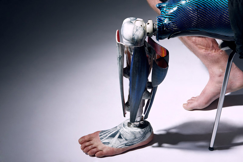 这个肌理分明的设计是Sophie用3D打印技术为在阿富汗战争中失去左腿的退伍军人Ryan Seary而做的,虽然他从不追求“以假乱真”,可Sophie将机械化的腿部肌理结构和“有血有肉”的脚部设计相结合的设计方式还是让他骄傲了一把,特别是当别人单看这只脚分辨不出真假的时候。