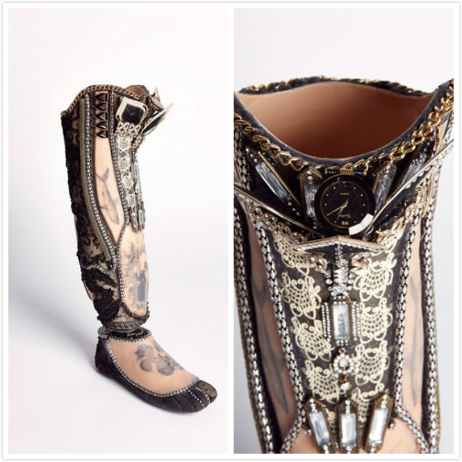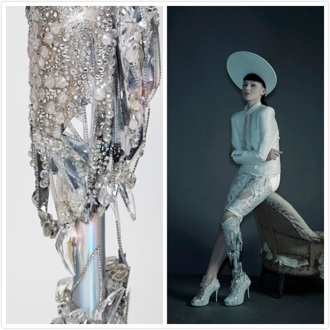 Sophie 对她的偏爱不止于此,这件将Modesta 送上时尚女王宝座的作品融合了施华洛世奇元素,Sophie用手工将假肢做到了华丽精致: