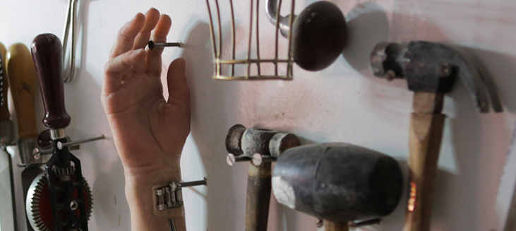 铁锤、凿子挂满墙壁,还有被铁钉固定在墙上的残肢。