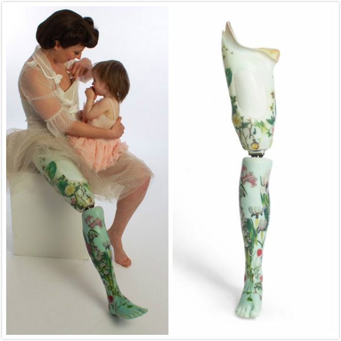 由此,Sophie产生了将Hope的愿望付诸实践的想法,开始突发奇想搞设计。她说:“我从不认为假肢只是对身体缺陷的弥补,相反,它是肢体的延伸,是身体与科技和艺术的结合。” 于是,Sophie 展开了另一场对假肢设计的探索——另类肢体计划。