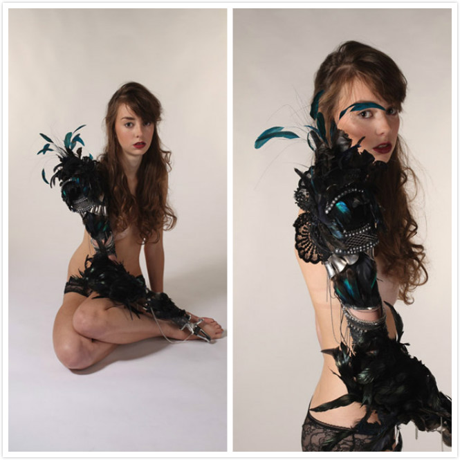 这条由羽毛和蕾丝装饰的手臂在演员Grace Mandeville看来胜过任何华装。