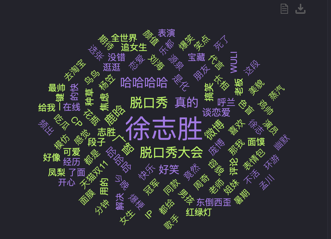 当网友们谈及徐志胜时,“哈哈哈哈”、“广智”、“好笑”等词较多,这些大多数来自于网友们对于志胜段子和本人的回应。
