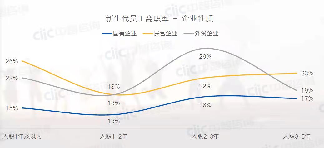 平均2-3年更换一次工作,入职1年内民企离职率最高