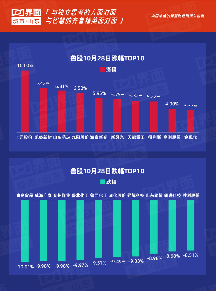 受大盘影响,10月28日,山东69只股上涨,181只股下跌,丰元股份领涨。