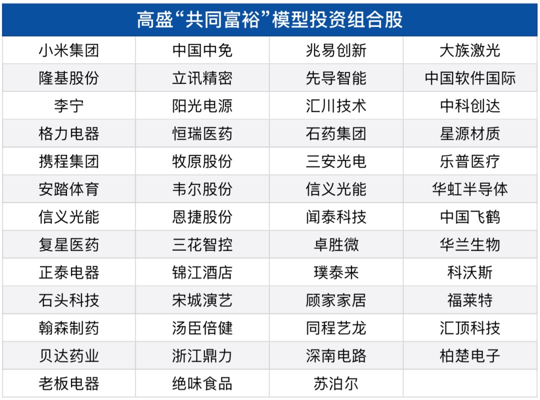 据此,高盛构建了一套包括50只股票的投资组合,标的股票主要来自A股和港股,包括小米、隆基股份、中国中免、立讯精密、携程、牧原股份、闻泰科技、宋城演艺等,公司分布于硬件、半导体、家电、医药、传媒等领域。