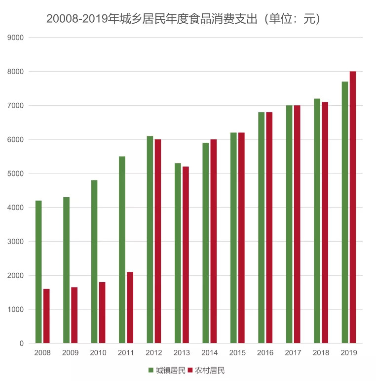在收入水平上升的背景下,我国居民人均食品消费支出整体呈上升趋势,饮食结构升级。