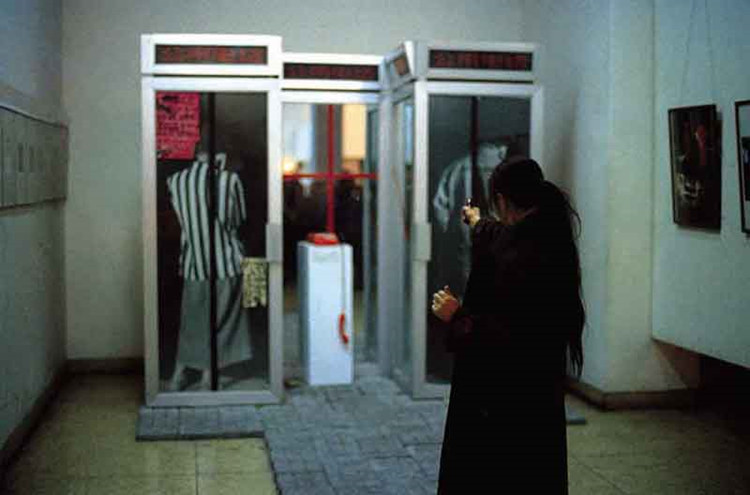 1989年2月5日,“中国现代艺术展”在北京中国美术馆开幕,栗宪庭将美术馆西厅作为张晓刚等西南艺术家作品的展示空间。展览开幕差不多三小时,来自杭州的肖鲁向自己的装置作品《对话》开枪,随即展览被美术馆管理方宣布关闭。重新开启之后,又有人发出匿名信,声称美术馆内有炸弹,展览再次被叫停。人们和媒体的所有注意都放在了这些具有政治可能性的事件上,或者放在了展览中的那些大胆而放肆的行为作品上:王德仁对避孕套的抛撒、李山“洗脚”、张念“孵蛋”、吴山专在展厅里“卖虾”……而没有过多关注那些述说内心焦虑与痛苦的架上绘画。