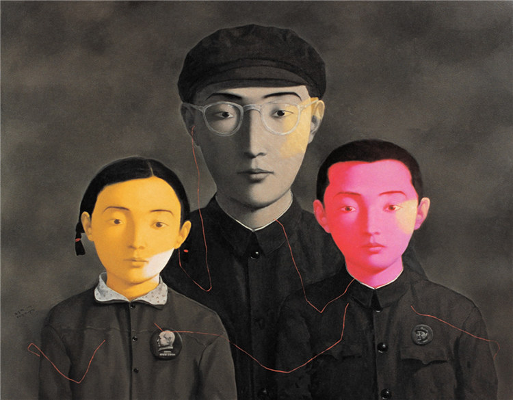 1993年暑假回到昆明,张晓刚翻开了父母的相集。这些来自另一个时代的旧照片唤醒了他儿时的记忆:沉默的父亲、精神失常的母亲、阴暗的房间与桌上的桐油灯……他从这里面也看到了这个国家的历史与现实:“家庭照这一类本应属于私密化的符号,却同时也被标准化,意识形态化了”。