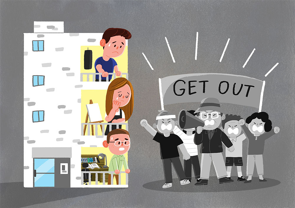 我还第一次见到了房东太太,她责怪我回来得太晚,怀疑我除了要拿回自己的东西,还有别的不轨企图,甚至惊动了物业。物业保安上到三十三层劝她,您消消气,买得起四五百万房子的人,房子被改造成这样,我们都理解。我跟太太辩驳说,我有正经的工作,挣的钱也不比谁少,而且是留学回来的。她好像真的有一点惊讶,说既然这样,为什么要租群租房?我心里觉得荒唐,这位太太真的不知道自己的房子被二房东改造过吗?既不想打理房子,又瞧不起自己的房客,想收钱与唾弃人真是并行不悖。后来我再路过那些承诺无群租的小区时,都会觉得我也曾是被驱逐过的一个,不,可能都不是一个,毕竟被看作“群”,是没有清晰面目的。