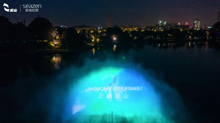 水幕际会,震撼光影,绚丽多变的冰屏特效照亮夜空,一字一句耀目闪熠,以极致的笔触,共同完成了一场精彩绝伦的现代视觉艺术作品,将山水城林的动人风华,熠熠生辉的演绎在人们的眼前。