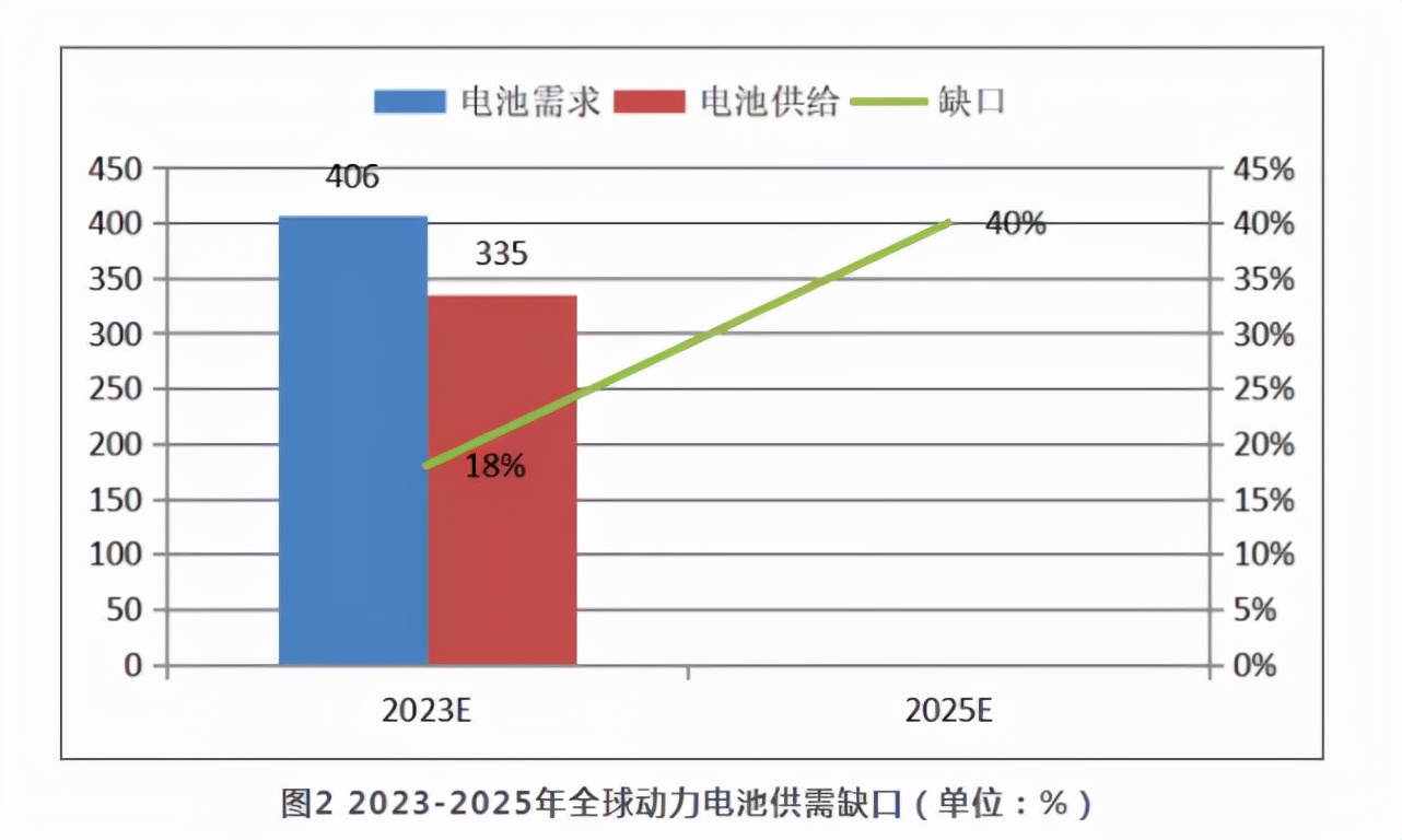 动力电池供给紧张,已经引起了全球关注。美国银行全球研究部预测,2025-2040年,包括纯电动汽车(BEVs)和插电式混合动力汽车(PHEVs)在内的所有电动汽车的全球市场渗透率将从23%上升至67%。有分析机构认为,从静态产能缺口角度看,2022-2025年,全球动力电池将会出现30、273GWh、628GWh、1151GWh的产能缺口;即便从考虑了每年新增扩产的动态产能缺口角度看,全球动力电池仍将分别出现17GWh、30GWh、45GWh、370GWh的产能缺口。