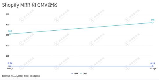 商户解决方案是目前Shopify的主要营收来源,与2020年同期相比,今年Q3其商户解决方案收入增加了50.8% 至2.654 亿美元。而Shopify解释,该部分收入增加的主要原因是本季度 Shopify Payments 收入增长。据悉 Shopify Payments 渗透率提高了 49.2%,而且支付也是GMV的主要贡献者,促成了205 亿美元,占比近50%。
