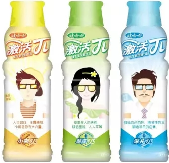 嫩黄、嫩绿、嫩蓝的马卡龙色系看起来非常小清新,但瓶身设计怪怪的,乍看像酸奶瓶或奶饮。