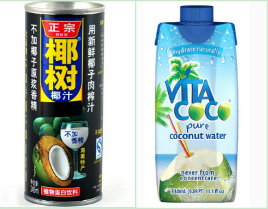 依然延续了国际市场的包装风格,酷似它的头号竞品vitaCoco。后者隶属红牛旗下,两年前进入中国。
