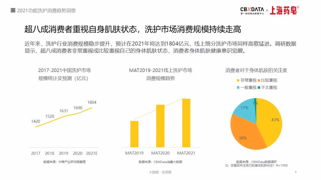 10月27日,第一财经商业数据中心(CBNData)联合上海药皂发布《2021功能洗护消费趋势洞察》(以下简称《报告》,点击阅读原文查看报告详情)。基于CBNData消费大数据,《报告》全方位的展现了消费者对于洗护产品新需求,并解读出了未来功能清洁型洗护产品的创新方向。