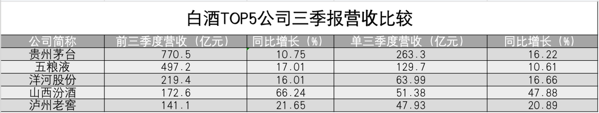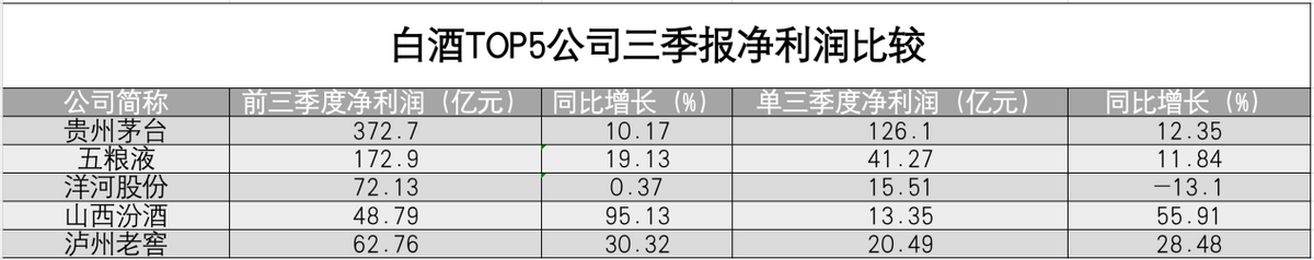 公司研究室注意到,在白酒TOP5公司里,单以第三季度而言,无论营收增速还是净利润增速,五粮液差不多在茅五洋汾泸中都是倒数第一。至于洋河股份,则是因为非经常损益带来前三季度净利润增速表现不佳,如果扣除非经常损益,则洋河股份前三季度净利润增速为21.57%;单三季度净利润增速为22.95%。业内人士认为,这也许就是三季报公布后,洋河股份与五粮液股价走势强弱的重要原因。