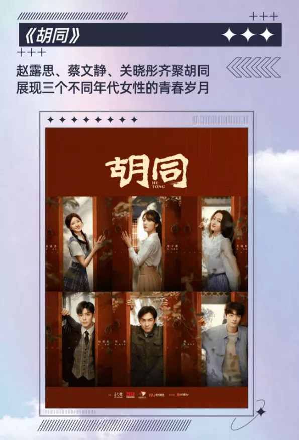 芒果的新剧《胡同》也比较特别,赵露思、蔡文静、关晓彤在其中饰演祖孙三代,讲述祖孙三代女性从居委会的开创、发展到发扬,始终秉持为人民服务之初心的故事。此外,赵丽颖最新的大女主商战剧《野蛮生长》,讲述的也是上个世纪九十年代的创业故事。