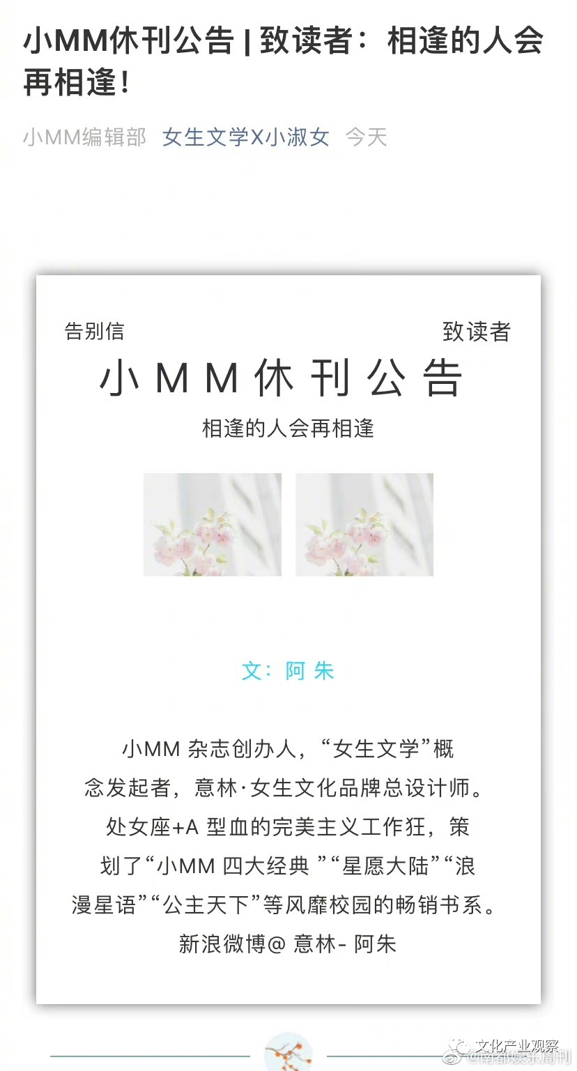 “今天,我们告别了小MM杂志,但女生文学的精神不会远离。”在10月31日《意林·小小姐》官方微博发布的无限期休刊启事中,总策划阿朱用了《相逢的人会再相逢》作为标题。宣告杂志将无限期与读者说再见。
