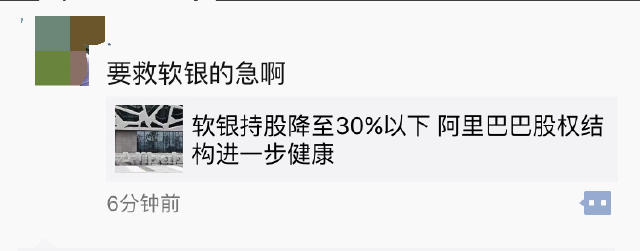 野马财经就股票被大股东抛售问题采访阿里巴巴,截至发稿前,阿里方面并没有给出回应。不过野马财经发现阿里巴巴集团一位中层管理者发布了一张朋友圈,表示是为了救软银的急。
