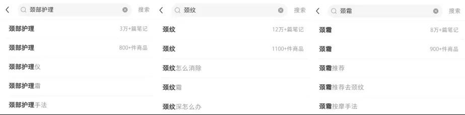记者在小红书上搜索,关于颈部护理的笔记超过3w篇,与颈霜相关的笔记也超过了8w篇,在更加细化的关于“颈纹”问题的笔记已经超过12w篇。