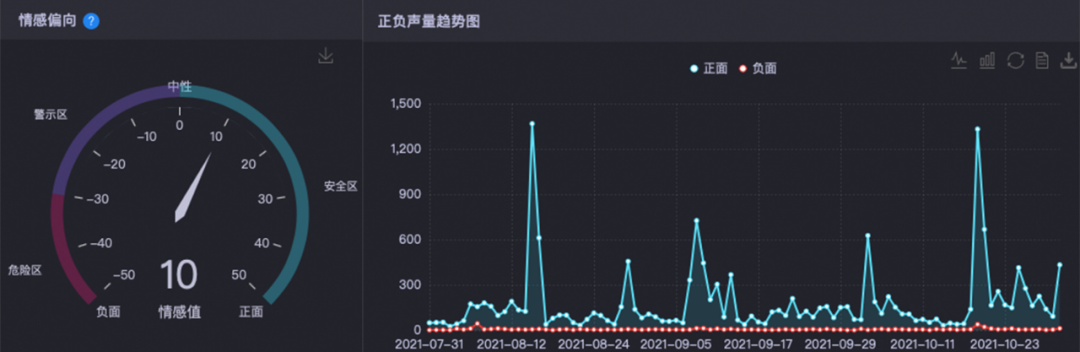 而完美日记的用户情感偏向也在安全区内,正向内容相比于负向内容差别较明显,这侧面也反映了完美日记的营销起到了正向作用。