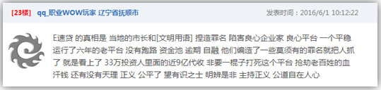 最近,E速贷事件正式盖棺定论,警方以涉嫌非吸的罪名逮捕了平台高层,暂扣了所有涉案财产,并呼吁投资人积极向公安报案、配合调查取证工作。此举按理是应受到老百姓的支持,不过,通过在新闻报道、第三方垂直网站、官网贴吧等渠道的浏览,我发现大部分的投资人、甚至是同行从业人员,都站出来为E速贷鸣不平。