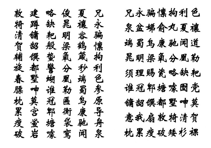 打铅笔稿、划横竖墨线、勾撇捺墨线、填墨、整理描白——这是每一个字诞生必经的五道工序。一幅字体大多在15000或18000个字,少则也有8000字,这不是设计师一个人能完成的,而是需要整个团队的协作。然而,每幅字体的修正由多人共同完成,这么多的字却必须在大小、结构、重心、粗细、笔形与风格的掌握上达到如出一人之手,这绝不是一件易事。