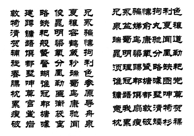 18岁就进了上海印刷技术研究所活字字体研究室的陈其瑞老先生曾回忆说,“那时候我们有一个方针叫‘整旧创新’,把旧的统一起来,然后再创造一些新的字体。具体来说,第一个工作,就是要把老的笔形规范起来,那时很多手写体和印刷体都不一样的。我们的工作就是要统一笔形、笔数,比方讲‘辶’,这个偏旁在旧字形中,上面是两个点,还有“俞”字,以前下面的立刀旁也不是现在的写法。很多都不一样的,把这些字统一的工作,就是我们那时候做的。