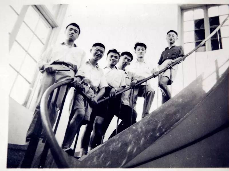 ▲ 1963 年印刷技术研究所旋转形楼梯旁的六位字体设计人员,依次是陈其瑞、张家声、过祖良、陈永海、许柏康、徐学成