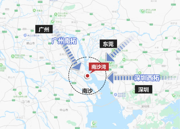 此外,相比于广州主城区,南沙湾更近东莞、深圳。这意味着,南沙湾未来或可成为穗莞深三地的沟通桥梁。