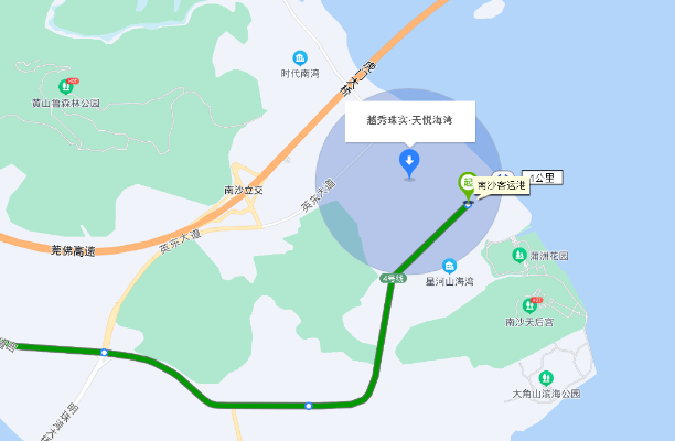 越秀珠实·天悦海湾距离最近的站点为4号线的终点站——南沙客运站,步行约为680m。