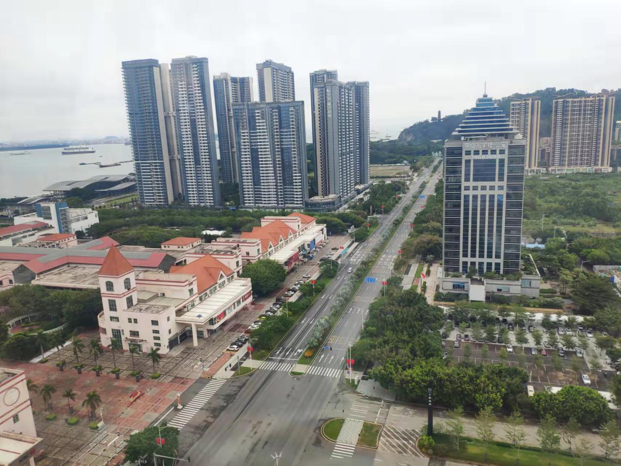 海景方面,南沙湾海岸线绵长,越秀珠实·天悦海湾远眺可望海。值得注意的是,周边高楼在建,或许会有所遮挡。