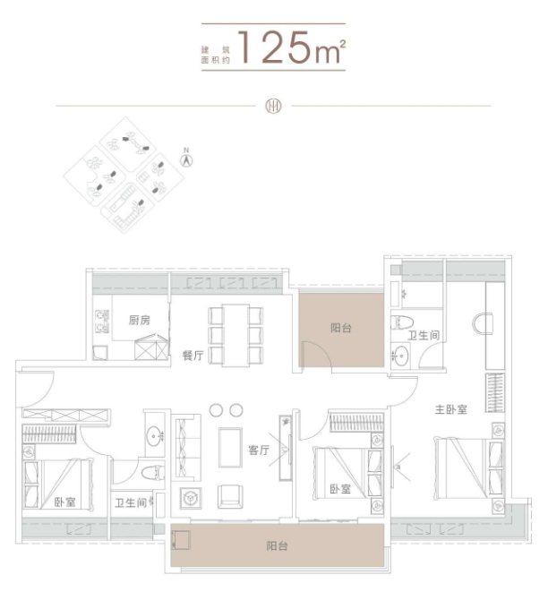 而125㎡的四房户型,阳台的长度约6.9m,开阔的阳台在增大采光度的同时,对空气对流也有很大帮助。
