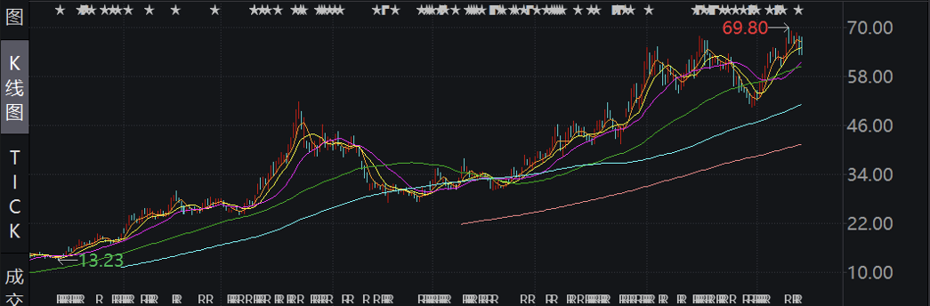 拉长K线图,长城汽车股价的上涨并非简单的跳跃。从去年10月的20元/股左右到今年10月最高近70元/股,市值从2000亿元飙升到如今的超过6000亿元,长城汽车回馈给投资者的是一份稳稳的幸福。