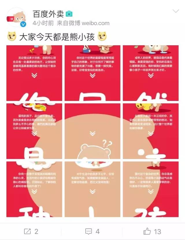 百度外卖放出了九宫格长图片,对用户说:你居然是这种小孩。