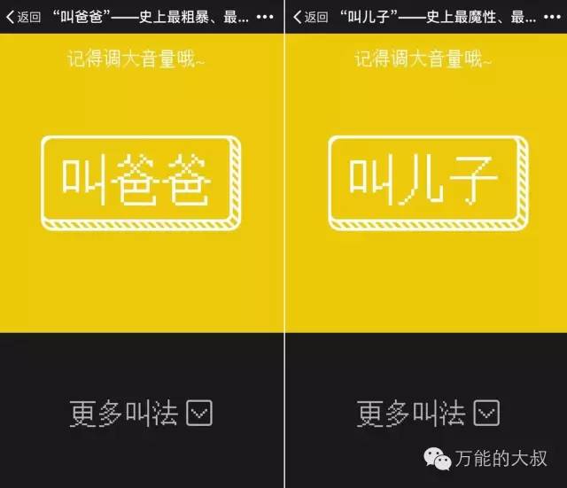 两个版本,一个叫爸爸,一个叫儿子,点击按钮听不同版本的叫法,确实简单粗暴。