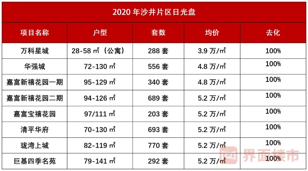 2020年,沙井片区多个新盘开盘即售罄——华强城、嘉富新禧(宝)花园、清平华府、珑湾上城、巨基四季名苑等,连万科星城的公寓房源都成功日光。