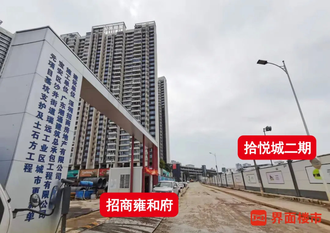 究竟这些新盘情况如何,未来入市又能否虏获购房者的心呢?近日,界面楼市实探了当中的招商雍和府、拾悦城二期,发现这两个盘仍在打地基的阶段,但前者已经开始了宣传,而后者则连营销中心都还未布置。