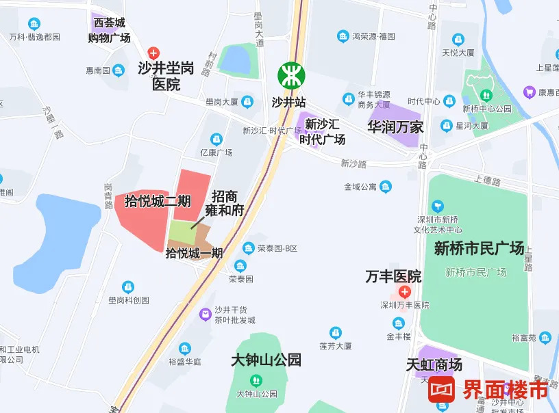 而项目区位方面,这两个盘所在的位置较为一般。虽然有地铁加持,但周边除了拾悦城一期外,多是工业区和城中村,而拾悦城一期也只带来了拾悦小学和数量不多的底商店铺。