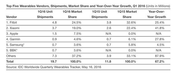 但市场调研机构的数据仍然在鼓吹这一市场,IDG最近发布的报告指出,在2016年第一季度,可穿戴设备出货量相比去年同年上涨了67.2%。