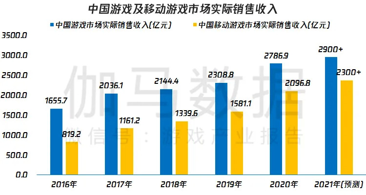 据伽马数据,2021年中国游戏市场实际销售收入预计将超2900亿元。近年来游戏产业向精品化升级的成果逐步显现,在玩法创新、内容表现、技术水平等领域中国游戏产品提升明显,产品流水聚集能力有所强化。
