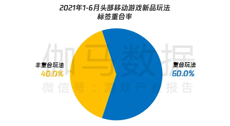 另据伽马数据统计,2021年1-6月头部新品中,有四成玩法标签为近三年来新出现的,近几年头部移动游戏新品已涌现出数十项新颖的细分玩法,部分产品虽然未进行较大的品类创新,但仍在玩法细节层面强化了创新元素。重合玩法标签虽然达到六成,但部分玩法在三年前仅处于探索阶段,例如开放世界、高自由玩法等,近年来已实现快速发展,并获得了大量用户的认可。