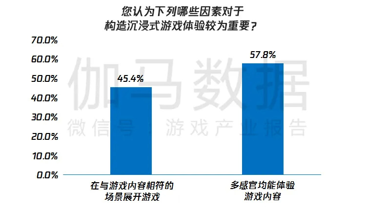 伽马数据调研显示,约七成游戏用户关注沉浸式游戏体验。