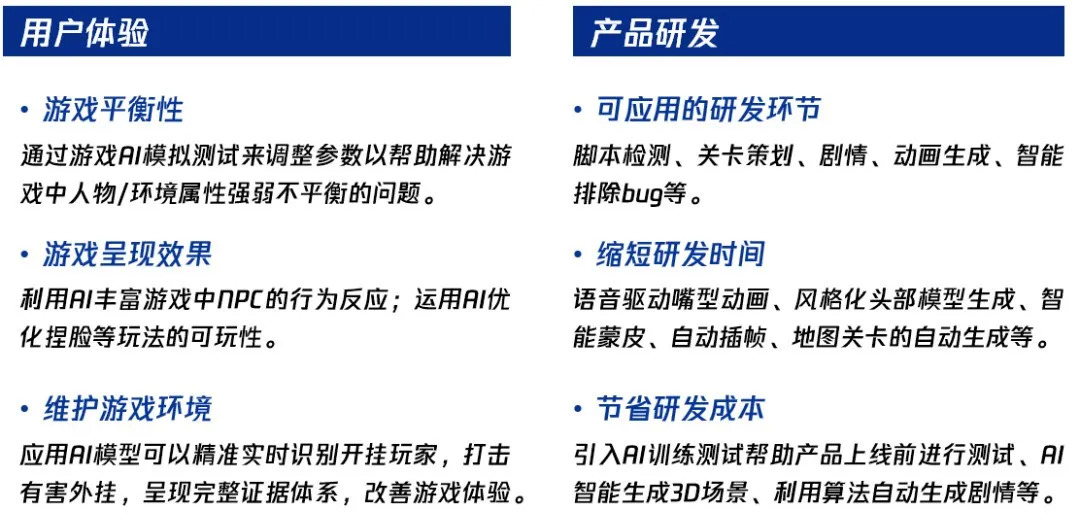 AI技术将持续提升产品研发效率,并作用于游戏平衡、表现效果、游戏环境等方面
