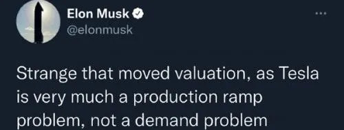 马斯克也不忘在推特上凡尔赛地说到:“推动市值上升有点奇怪,因为特斯拉市值的增长更多是产量能否持续增长的问题,需求从来都不是问题。”