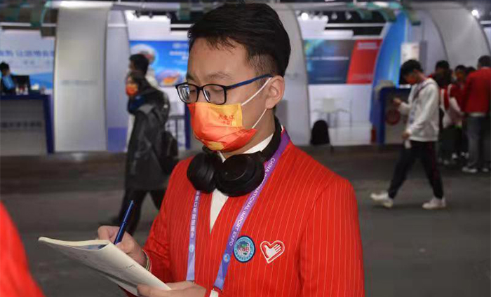 从10月底各高校志愿者到馆实训起,一整天的工作结束后,姜男都要同后勤保障组的小伙伴一同开会总结当天遇到的问题。志愿服务保障工作总是一环扣一环,许多岗位志愿者会面临临时加班或临时通知上岗的情况,很多临时用车也会相应增加,突发情况发生时要进行多方沟通也是常有的事,因此,非常考验个人的临场应变能力和沟通协调能力。“帮助了他人,也成就了自己。”这是姜男对于志愿精神的理解。