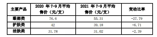 虽然几大化妆品品牌公司的营业成本均较去年同期有所上涨,但目前国内品牌并没有大规模涨价的倾向。反而,部分公司的产品还在第三季度有所下降。例如,丸美股份公告显示,今年第三季度,公司的眼部、护肤、洁肤三类产品平均售价均有下降,下降比例分别为27.79%、6.71%和2.39%。其中,眼部产品平均售价下降的原因系配赠力度加大所致。同期,上海家化的护肤和母婴品类的产品售价也分别同比下降了9.66%和18.96%。