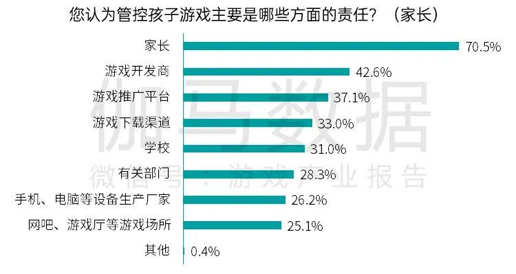 意识增强,七成家长认为管控孩子游戏首要责任在己